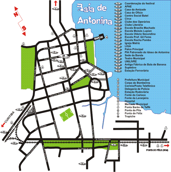 As despesas com alimentação serão por conta do participante. A cidade de Antonina oferece muita variedade e opções de comida, a preços acessíveis. Procure, porque muitas estarão praticando preços especiais durante a época do Festival – o forte são os frutos do mar.  Na praça Coronel Macedo haverá uma feira gastronômica onde se pode encontrar desde lanches até pratos e guloseimas típicas da região. Não deixe de provar bala de banana, é muito bom. Alguns  restaurantes conveniados oferecerão refeições a partir de R$ 6,50 durante o Festival, procure-os.