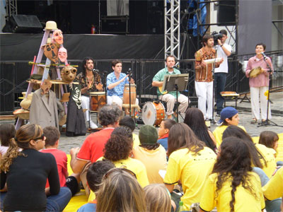 as ruas da cidade com os brincantes do Bananal. Ao longo