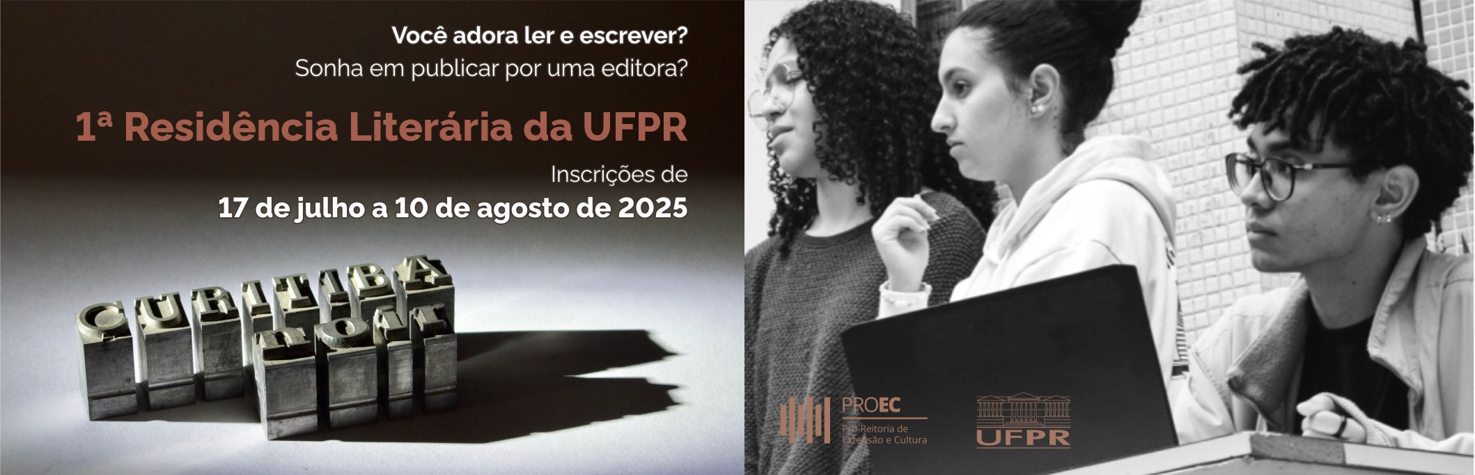A Universidade Federal do Paraná, por meio da sua Coordenadoria de Cultura, da Pró-Reitoria de Extensão e Cultura, torna pública a Chamada Interna nº 06/2025 para a Residência Literária, ação do projeto de extensão Ateliê de Criatividade: Arte-educação para Autonomia e Vida, para a participação de seus estudantes de graduação.